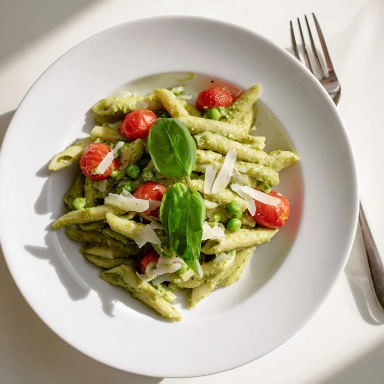 - Tiefkühlerbsen (150 g): Sie sind ein Lebensretter, weil sie direkt mit der Pasta kochen und eine natürliche Süße bringen, die das würzige Pesto ausgleicht.