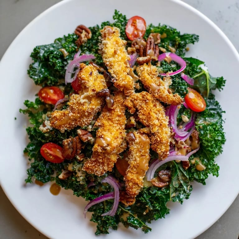 Ich erinnere mich noch gut an den Abend, als ich diesen Salat für Freunde gemacht habe, die eigentlich Pizza bestellen wollten. Sie sahen skeptisch auf die Salatschüssel, bis sie das erste Stück knuspriges Hähnchen probierten. Plötzlich war die Schüssel leer und einer meiner Freunde fragte nach dem Rezept. Es war einer dieser seltenen Momente, in denen Essen Menschen wirklich überrascht und alle gleichzeitig zufrieden sind.