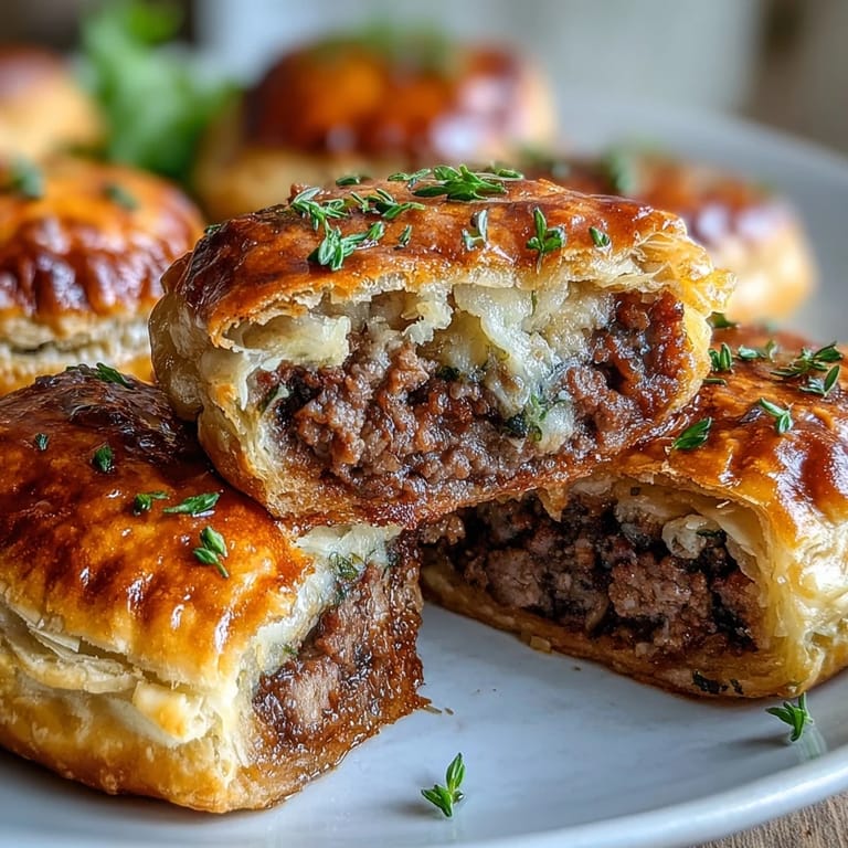 Mundgerechte Pasteten mit cremigem Teig und würziger Rindfleischfüllung – ideal als Appetithäppchen.