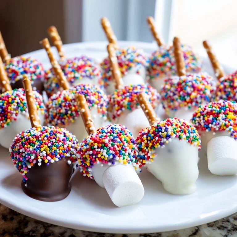 - Geben Sie Regenbogenstreusel, mini Schokostückchen und Kokosraspel in separate flache Schalen zum einfachen Eintauchen.